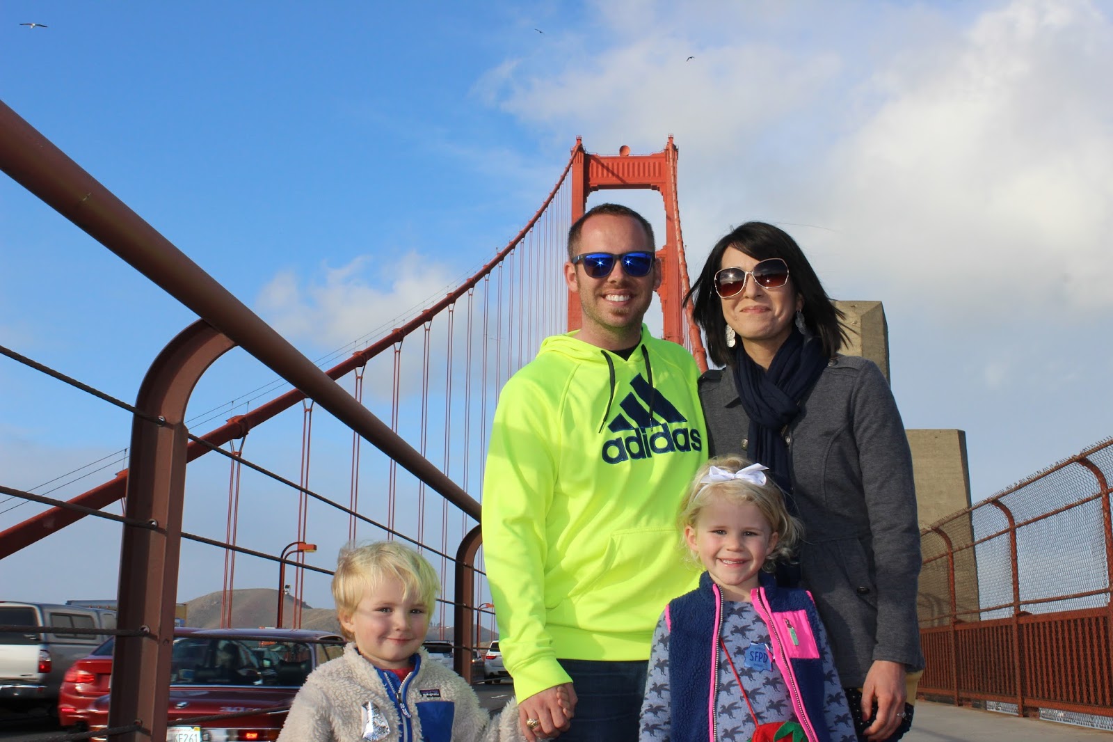 But the best part came the next day. On Saturday our families collided and we spent the entire day touring San Francisco. We visited the Golden Gate Bridge, rode a cable car, walked the streets, saw thousands of Santas, rode on BART, ran to Twitter Headquarters, and even rode (yes, all 6 of us) in a Pedicab.